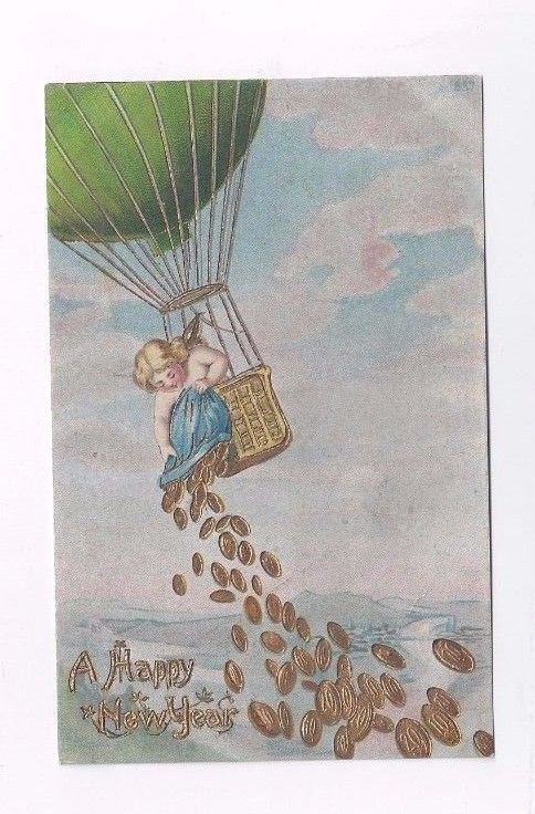Title (ebay affiliate link): Antique db 1911 New Year Post Card Child in Hot Air Balloon Scatters Gold Coins