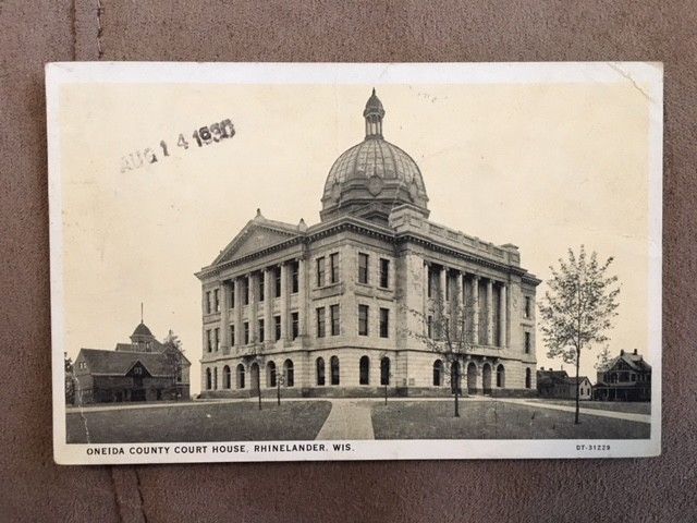 Title (ebay affiliate link): RHINELANDER, WISCONSIN: Oneida County Court House & Grounds View ca1920s