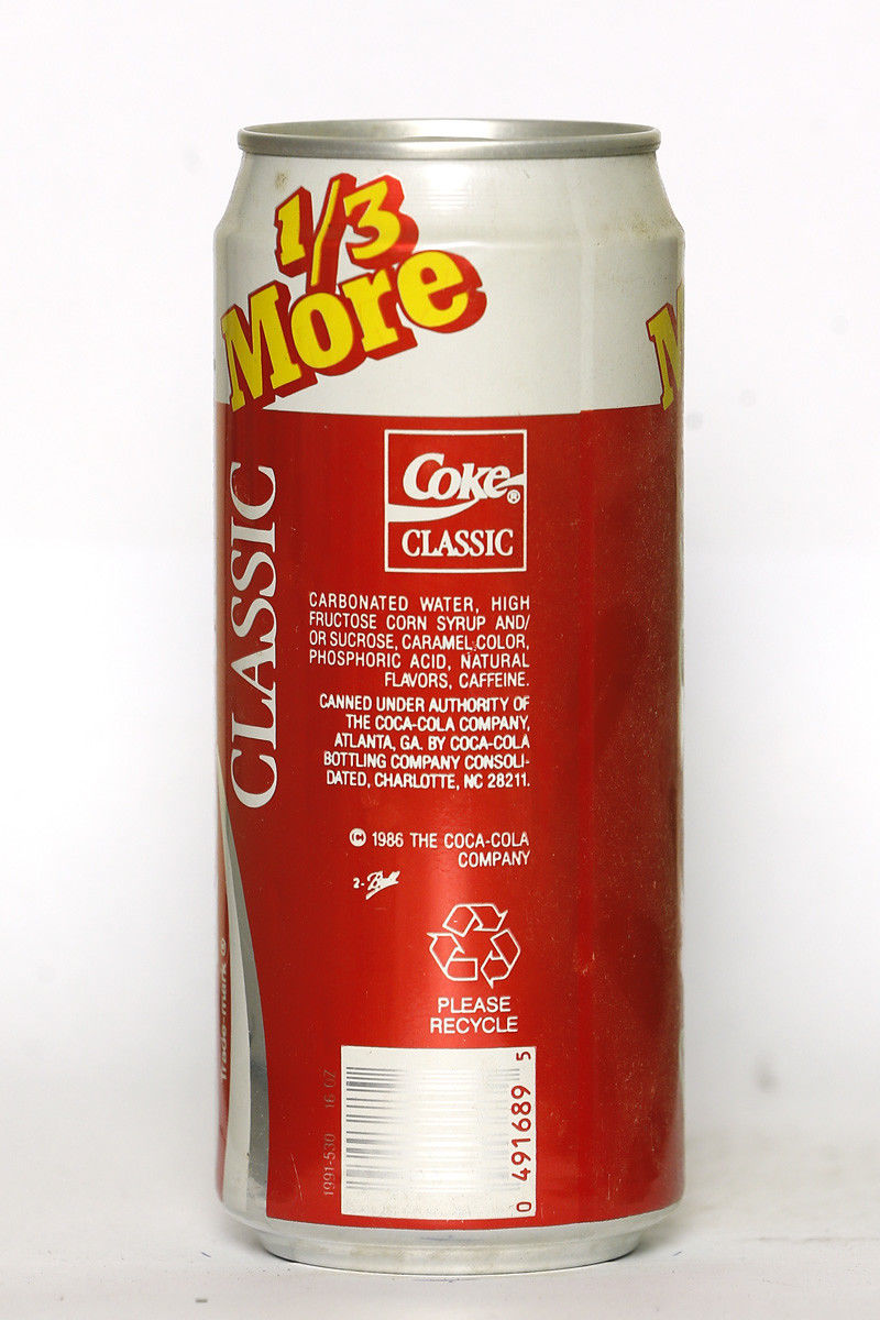 1990''s Coca Cola Classic can from the USA, 1/3 More (473ml) (5)