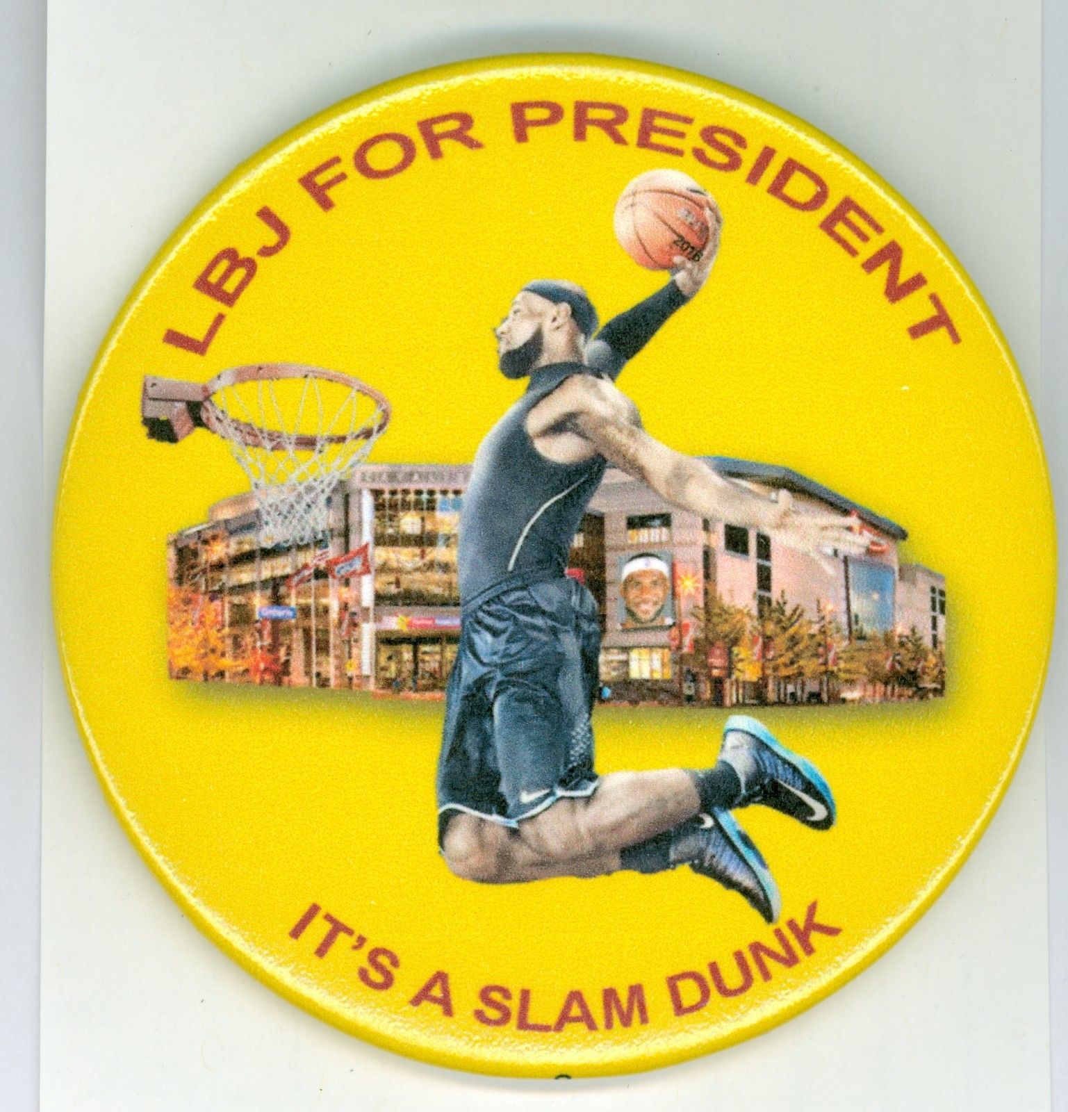 2016 LeBron James Political Campaign Pinback Button - LBJ For President larger