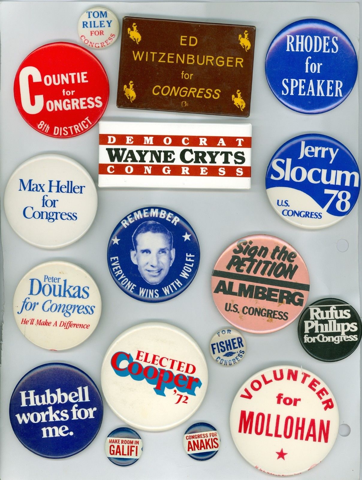 Title (ebay affiliate link): 17 Vintage 60s-90s US Congress Political Campaign Pinback Buttons Countie Riley