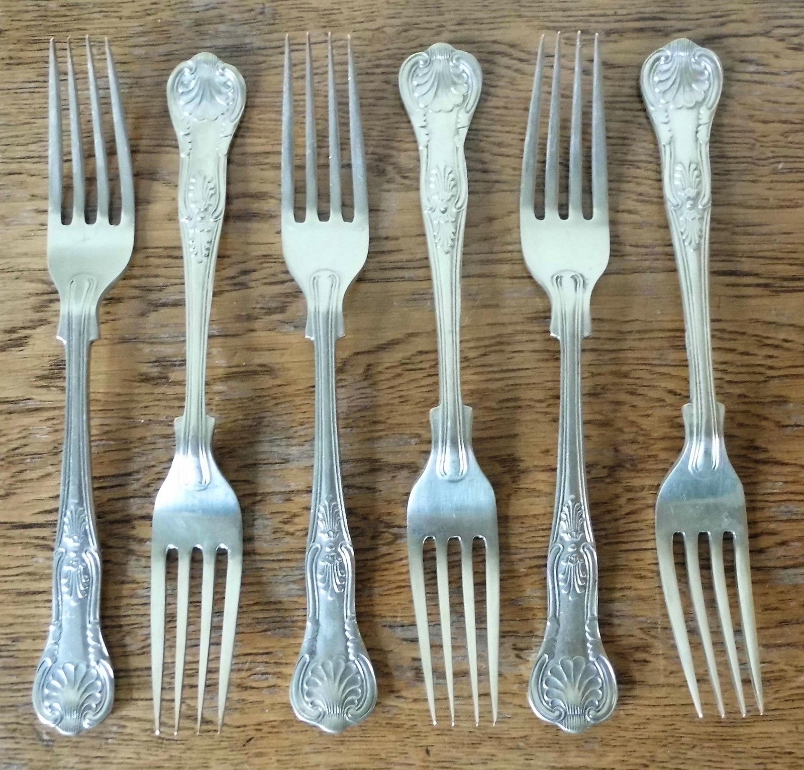 Title (ebay affiliate link): 6 VINTAGE SHEFFIELD SILVER PLATE Joseph Rodgers KINGS PATTERN DINNER TABLE FORKS