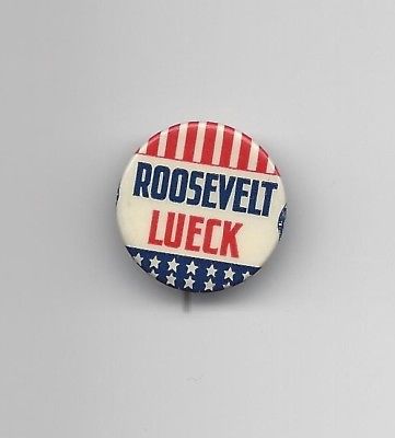 Title (ebay affiliate link): FDR Arthur Lueck (D) Wisconsin Governor coattail 1936 political pin button