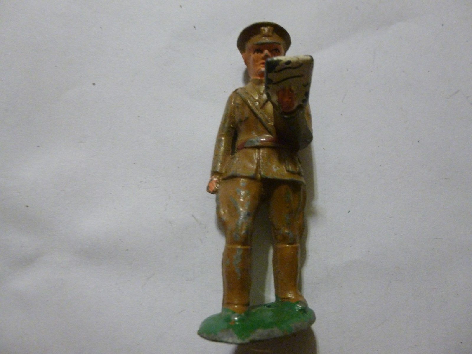 VTG BARKLEY TOY LEAD SOLDIER OFFICER READING BOOK