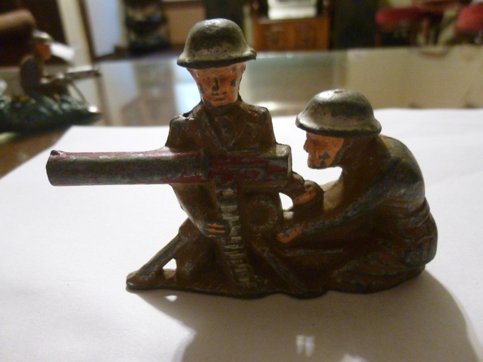 VTG BARKLEY LEAD TOY SOLDIER 2 MEN ON MACHINE GUN