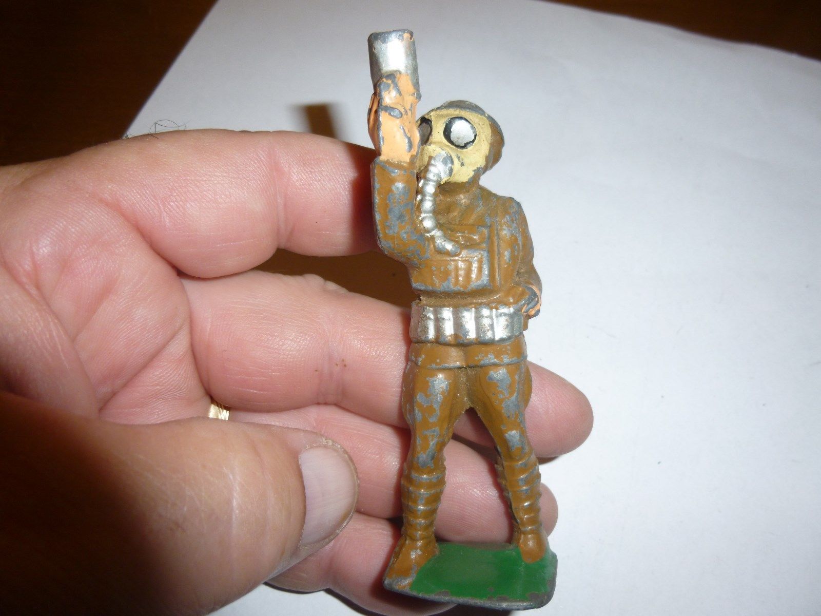 Title (ebay affiliate link): RARE VTG BARKLEY LEAD TOY SOLDIER GAS MASK SHOOTING FLARE GUN
