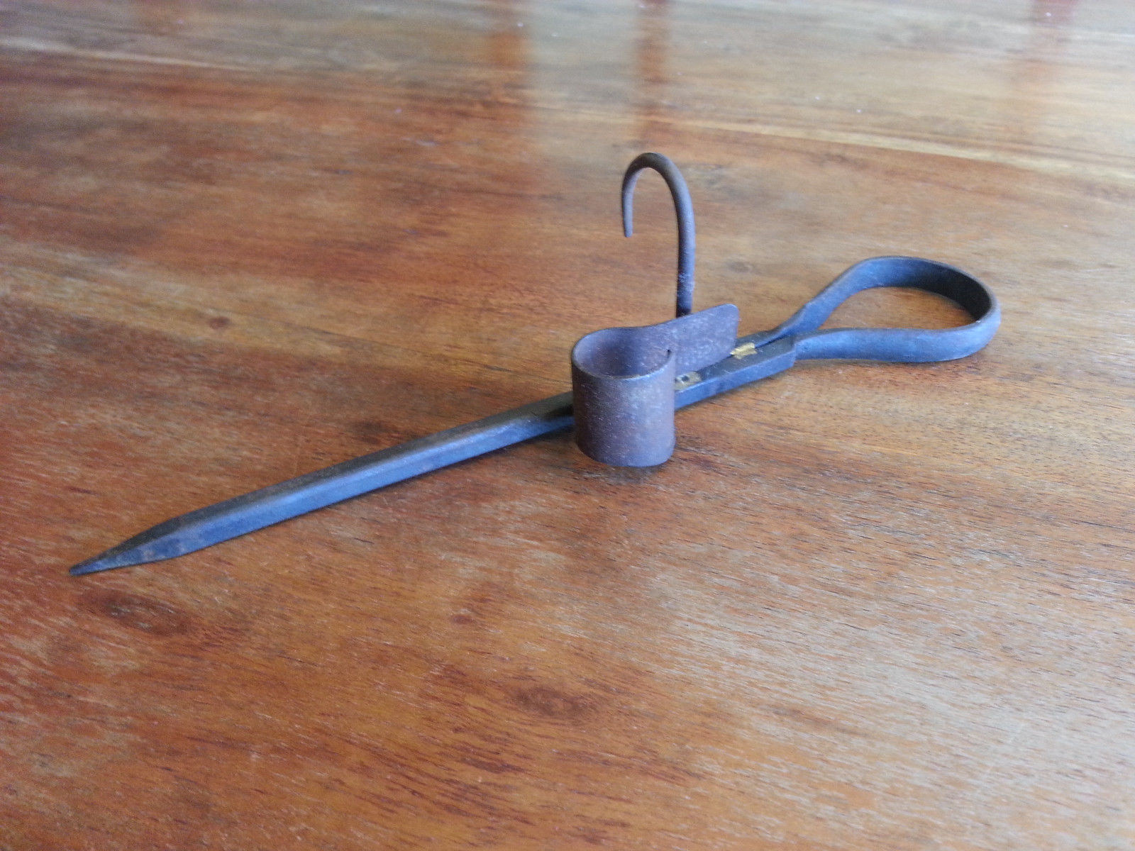 Title (ebay affiliate link): Antique Wrought Iron Miners Candle Stick Holder Sticking Tommy or Tommy Stick