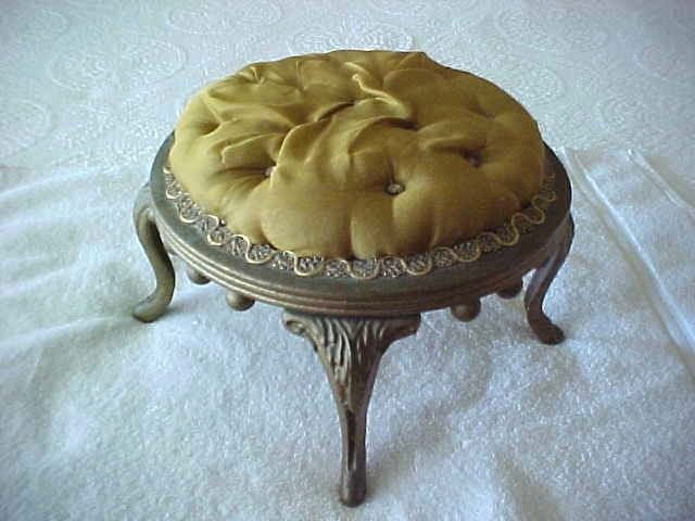 VINTAGE ROUND FOOTSTOOL WITH TUCKED FABRIC TOP