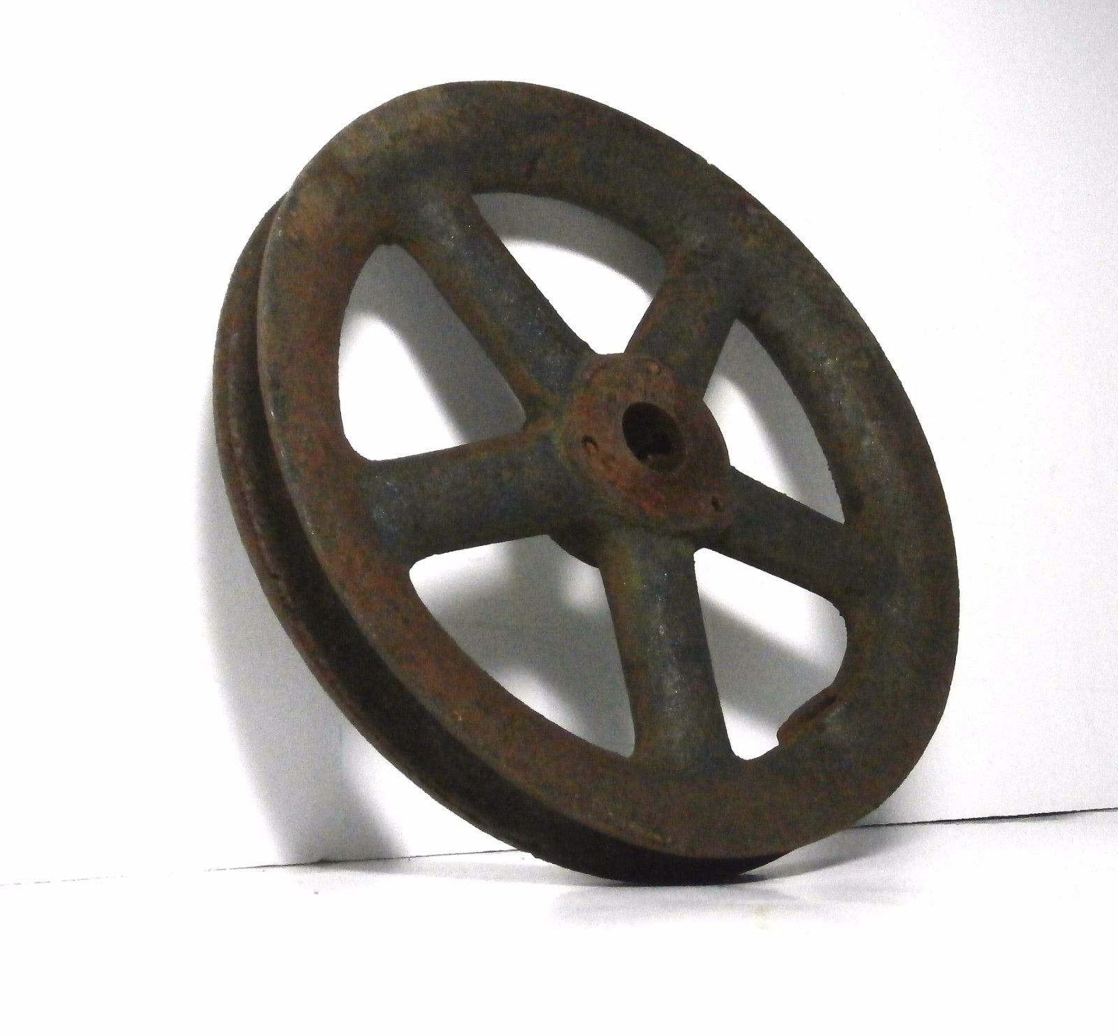 Title (ebay affiliate link): Vintage Cast Iron Salvage Pulley Wheel 5 Spoke Industrial Primitive Steampunk