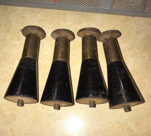 Set of 4 Vintage Table or Stool Wood Legs Mid Century Modern Metal Feet