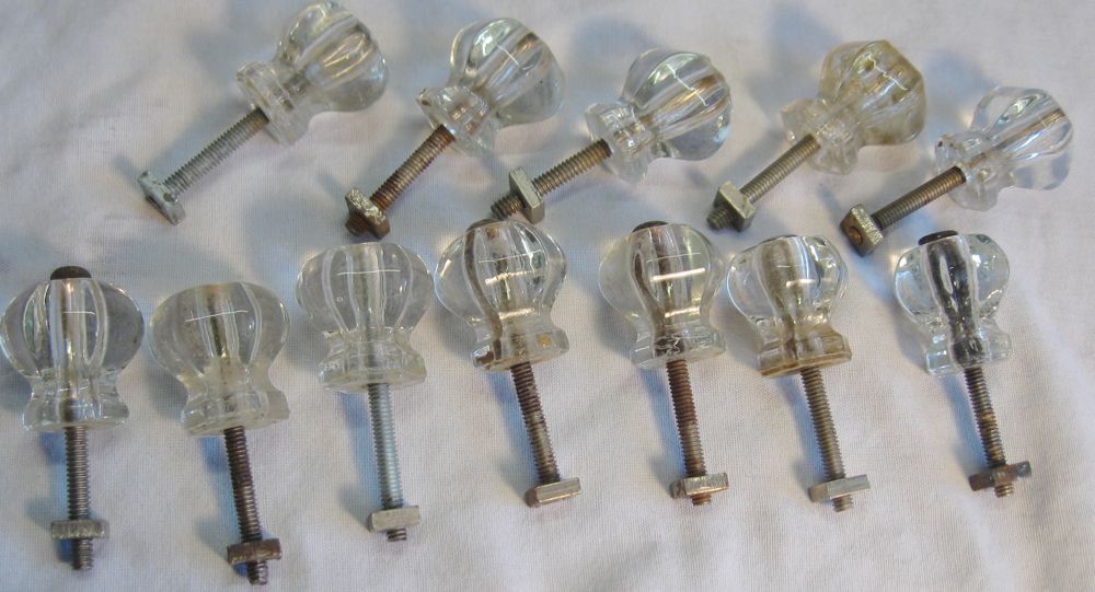 Title (ebay affiliate link): LOT OF 12 ANTIQUE GLASS DRAWER OR DOOR FURNITURE PULLS OR KNOBS