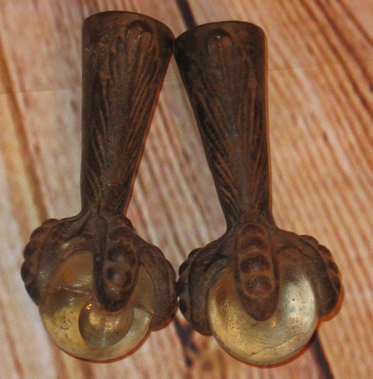Title (ebay affiliate link): Antique Cast Iron Metal Claw & Glass Ball Furniture Feet Foot Castors Lot 2,Pair