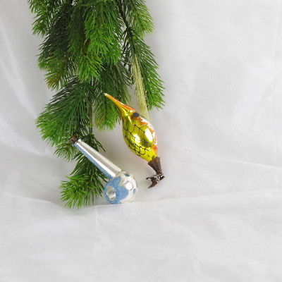 Title (ebay affiliate link): 2 x Vintage Glass Christmas Ornaments, bird on clip, pipe