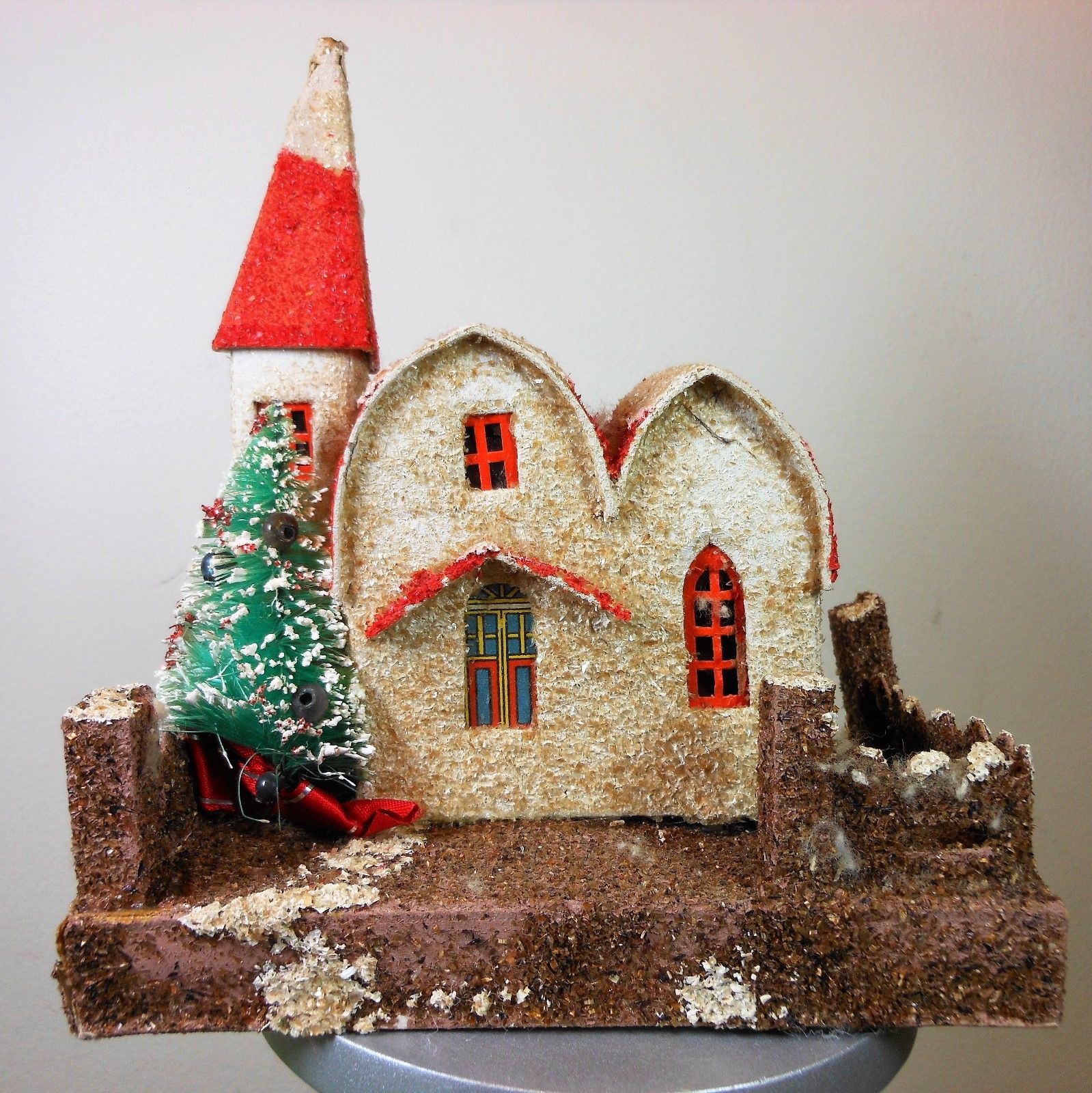 Title (ebay affiliate link): LARGE Vintage Cardboard Coconut Christmas House or Church #4