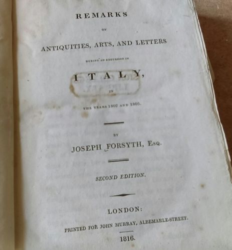 Title (ebay affiliate link): SCARCE 1816 GEORGIAN GRAND TOUR TRAVEL BOOK on ANTIQUITIES, ART & LIFE in ITALY.
