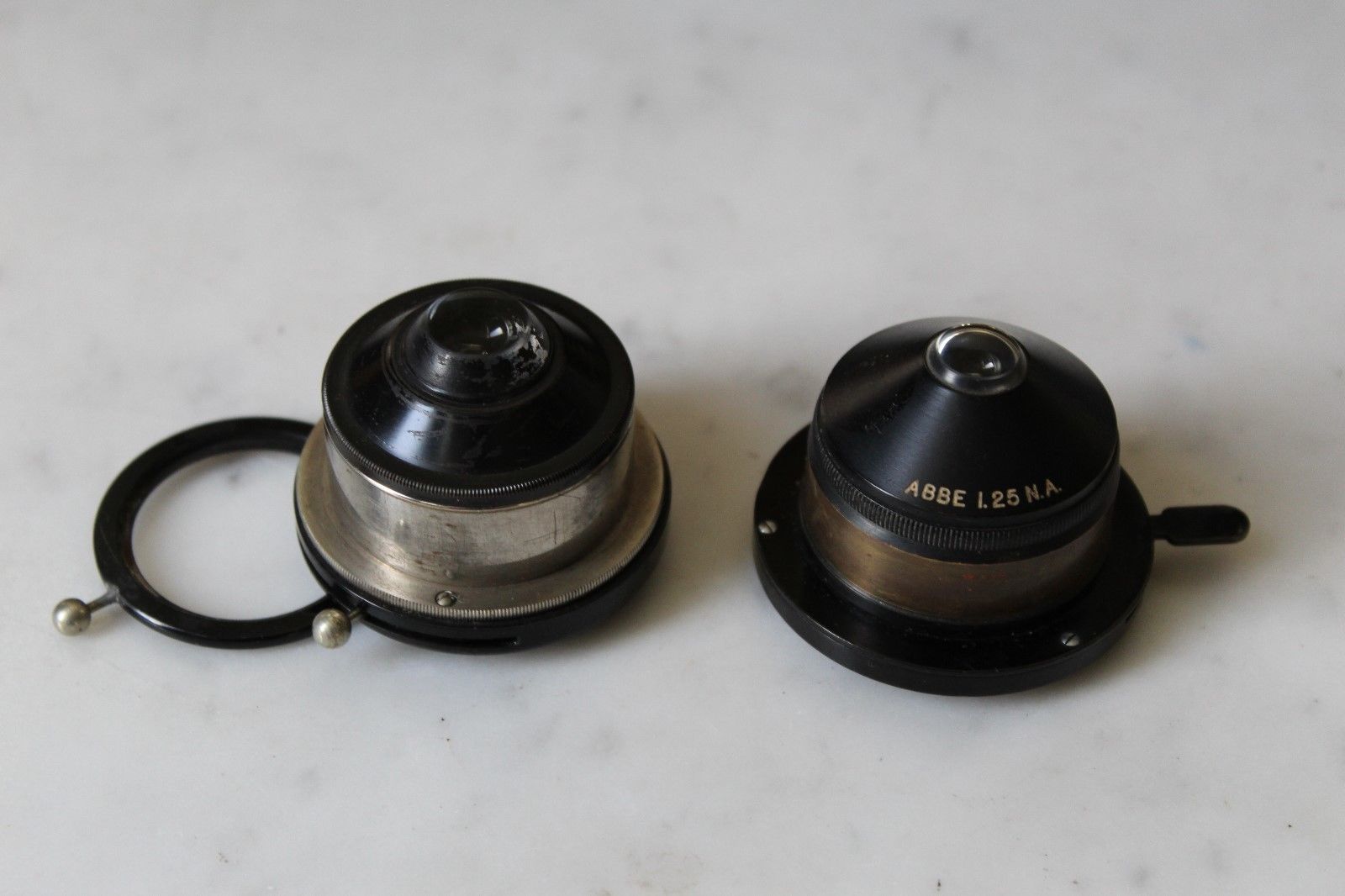 A PAIR OF ABBE MICROSCOPE CONDENSORS