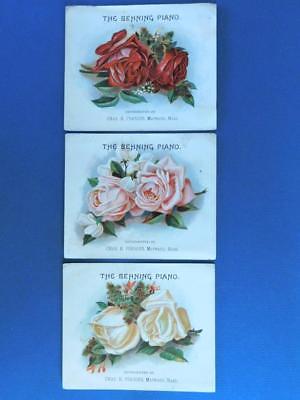 3 The Behning Piano Floral Victorian Trade Cards Chas. H Persons Maynard Mass
