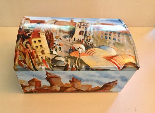Title (ebay affiliate link): Lebkuchen SCHMIDT TIN BISCUIT BOX WITH LID ON BEAUTIFUL artwork germany