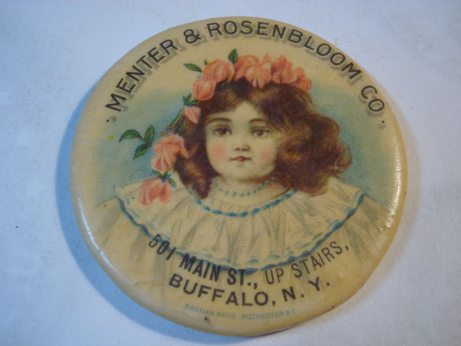 Title (ebay affiliate link): CELLULOID ADVERTISING POCKET MIRROR MENTER & ROSENBLOOM CO. BUFFALO, NY