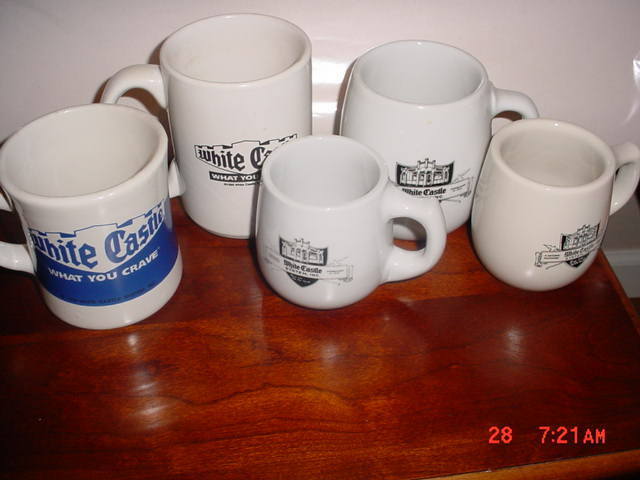 Title (ebay affiliate link): Vintage White Castle (5) Coffee Cups Cigarette Bottoms On Three