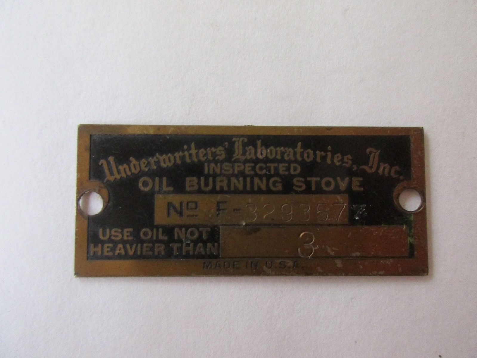 Title (ebay affiliate link): Vintage Underwriters Labortories Inspected Oil Burning Stove Brass Name Plate
