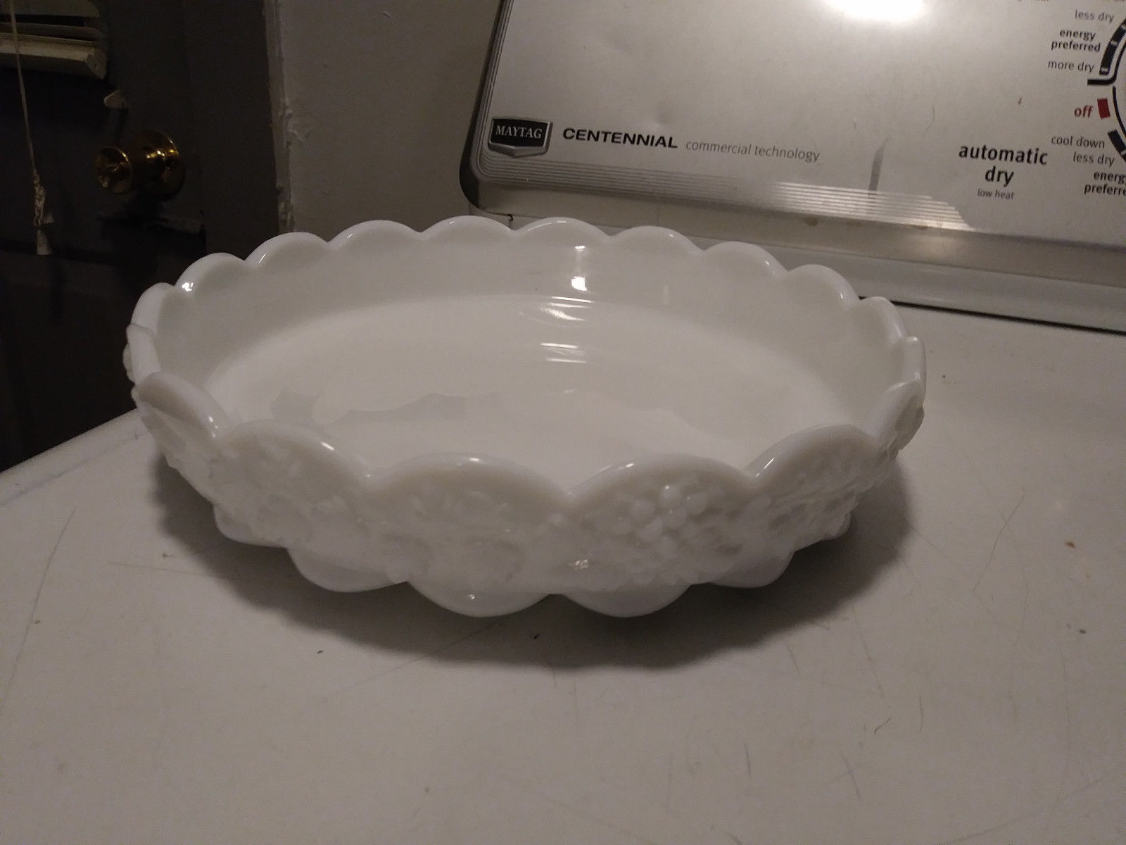 Title (ebay affiliate link): VINTAGE WESTMORELAND PANELED GRAPE MILK GLASS ROUND BOWL NICE SHAPE