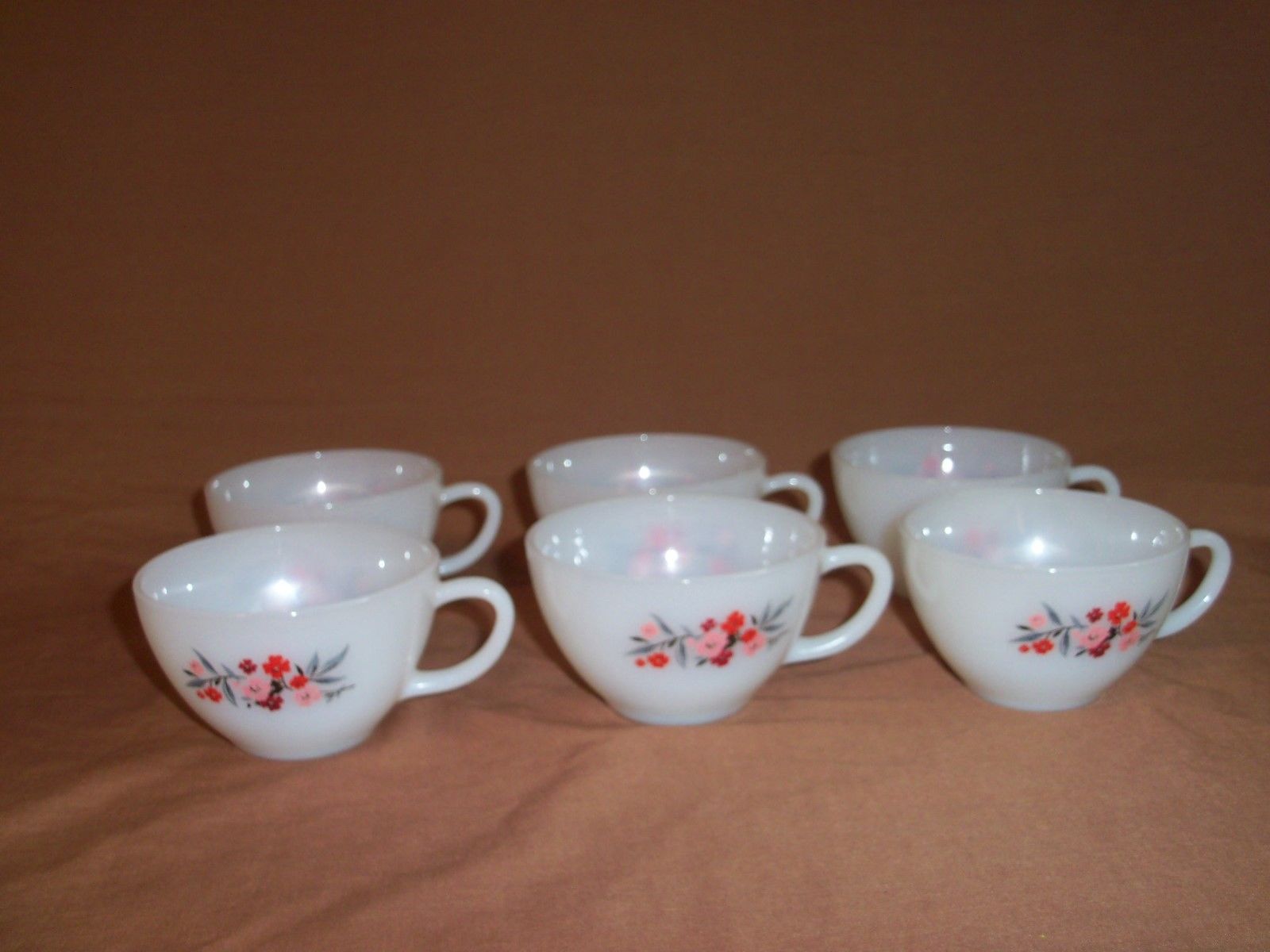 6 Vintage Fire King Oven Ware Milk Glass White Primrose Cups