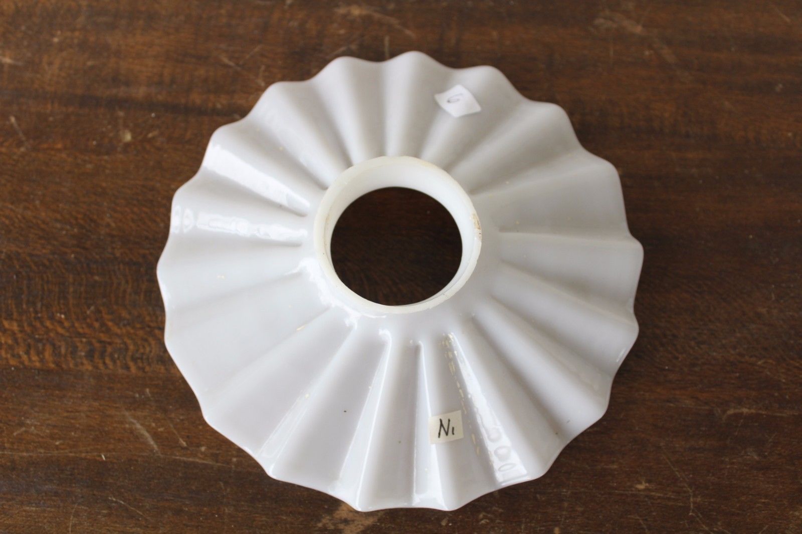 ANTIQUE MILK GLASS RUFFLED EDGE CRIMPED PETTICOAT CHIMNEY OIL LAMP SHADE 6 OF 9