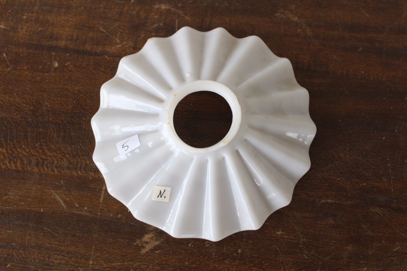 ANTIQUE MILK GLASS RUFFLED EDGE CRIMPED PETTICOAT CHIMNEY OIL LAMP SHADE 5 OF 9
