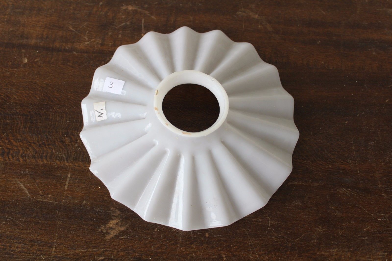 ANTIQUE MILK GLASS RUFFLED EDGE CRIMPED PETTICOAT CHIMNEY OIL LAMP SHADE 3 OF 9