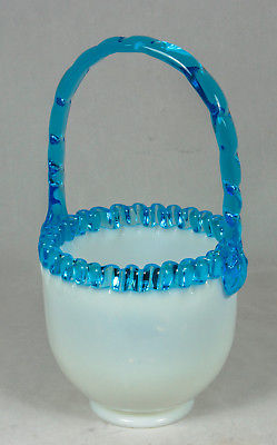 Fenton Blue Crest Ruffled Edge Milk Glass Busket