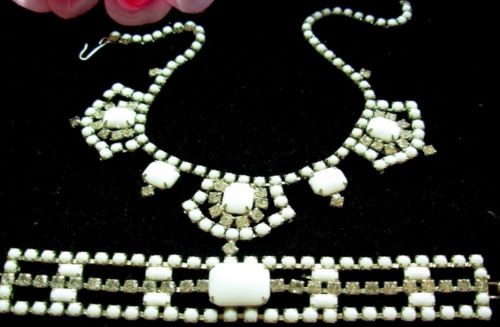 Title (ebay affiliate link): VT DESIGNER JULIANA WHITE MILK GLASS clear RHINESTONE NECKLACE BRACELET SET LOT