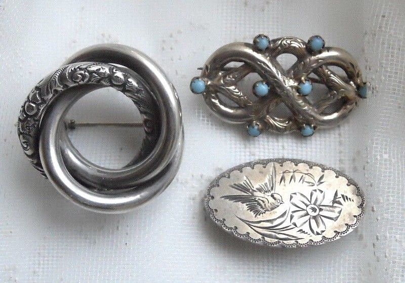 Title (ebay affiliate link): 3Pc Antique Victorian Pin LOT Engraved Bluebird, Embossed Circle, Aqua MilkGlass