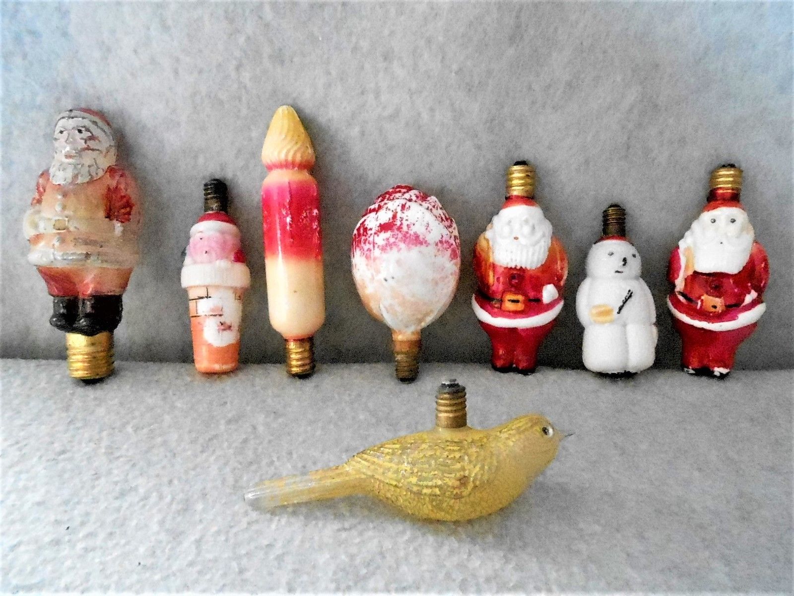 Title (ebay affiliate link): 8 Vintage Figural Christmas Bulbs, Milkglass & Painted Glass, Santa, Rose, Bird