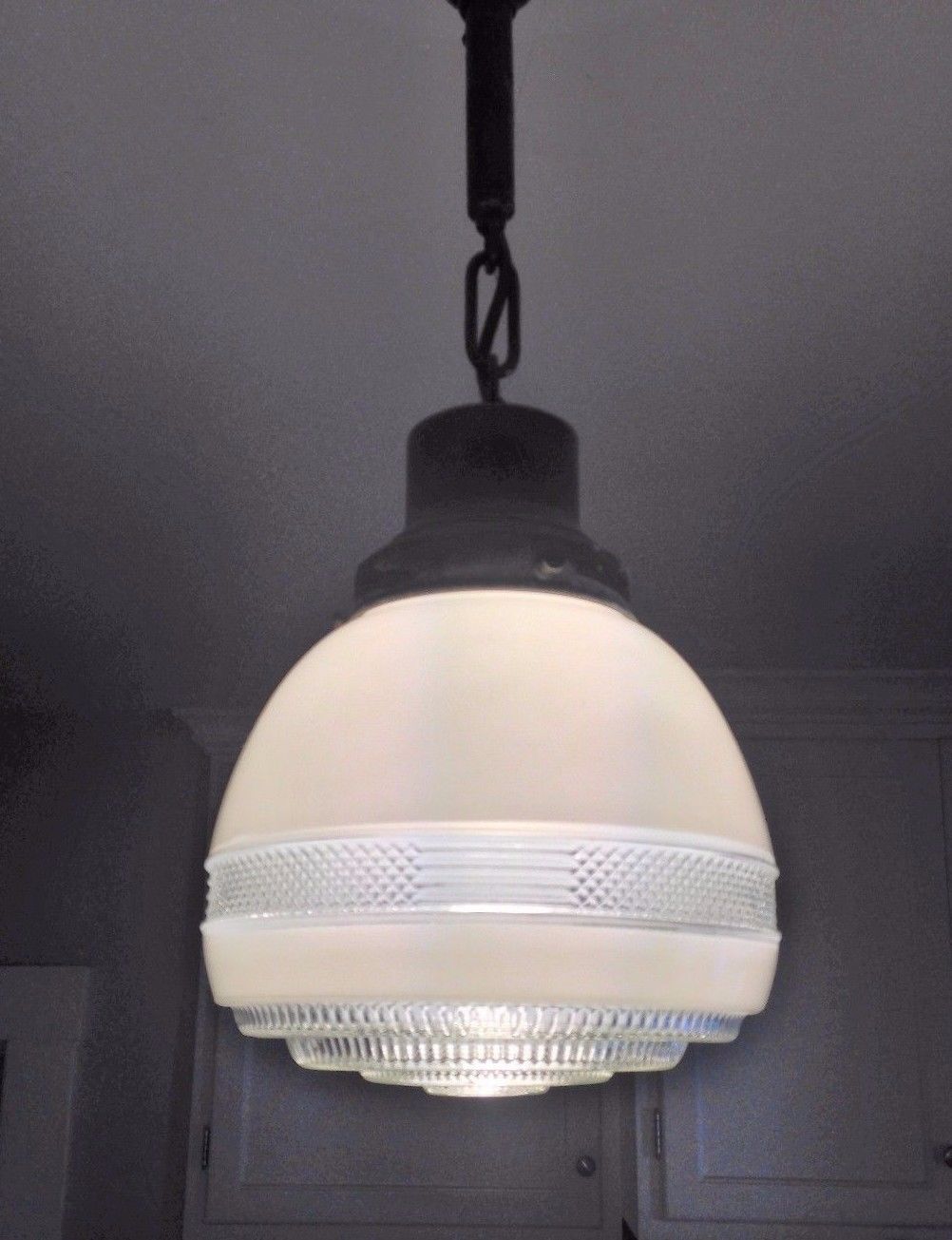Title (ebay affiliate link): Vintage 1920s 30s Art Deco Space Age MCM Milk Glass & Clear Ceiling Light Shade