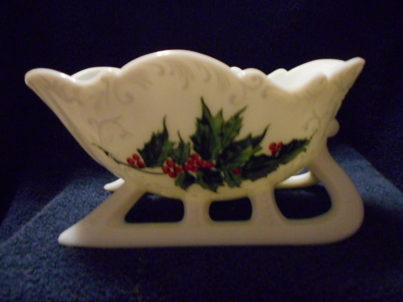 Title (ebay affiliate link): Vintage Westmoreland Milk Glass Sleigh - Hand Painted Holly Sprigs 36