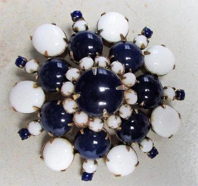 Vintage 50''s Flower Milk Glass Rhinestone Pin Brooch Signed Original By Robert