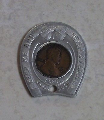Title (ebay affiliate link): Vintage Aluminum Lucky Horseshoe Keychain Fob with 1958 penny Fairway Oil Co