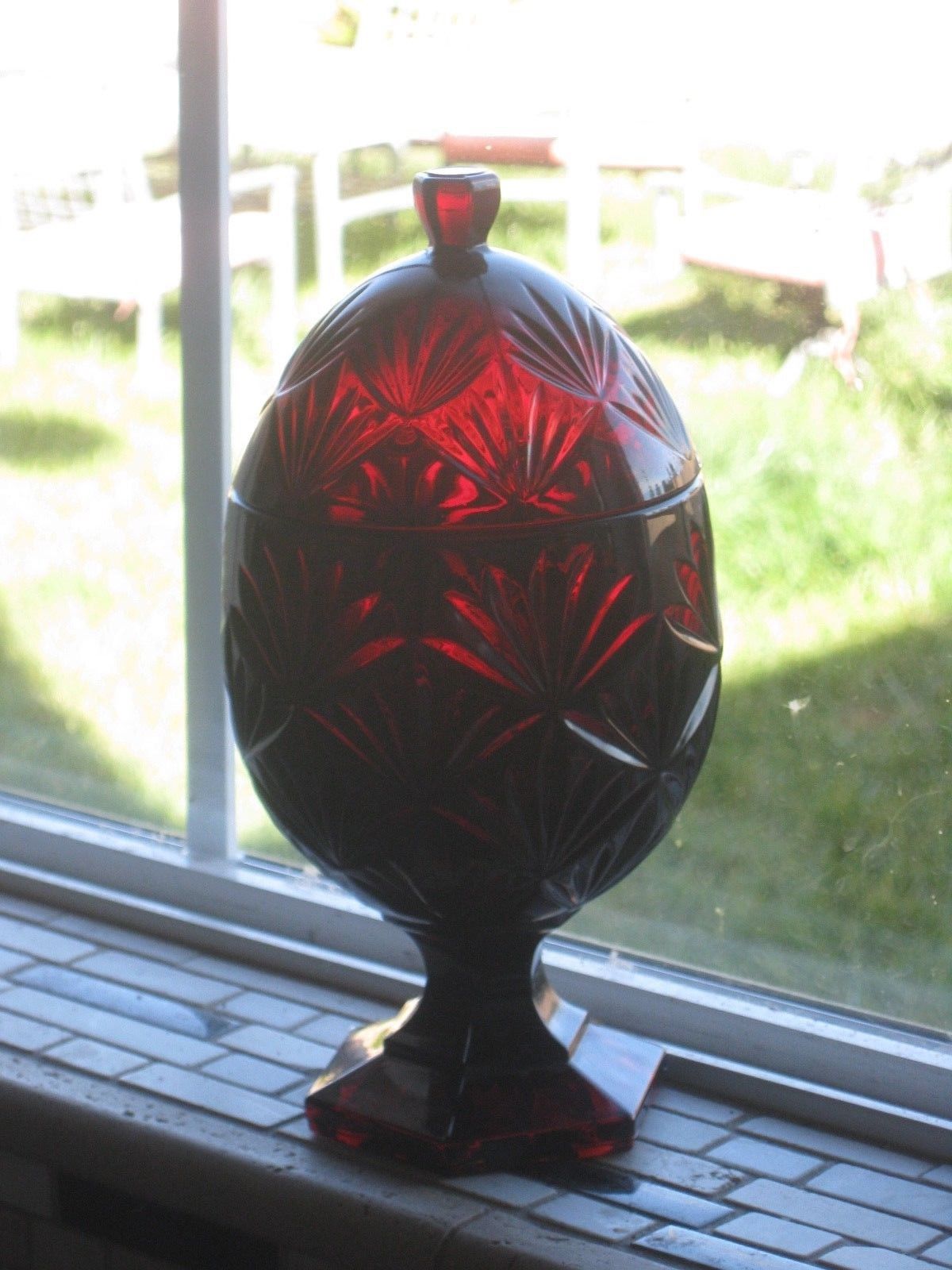 Title (ebay affiliate link): Vintage Ruby Red Thick Glass Pedestal Egg ( Depression Art Deco Carnival )