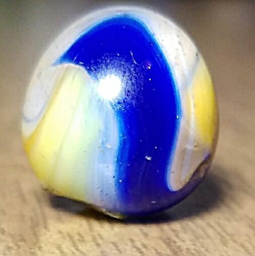 Title (ebay affiliate link): ~EXOTIC~ BLUE & YELLOW POPEYE ODDITY Akro Agate Marble Cullet Scrap Glass 0.2 OZ