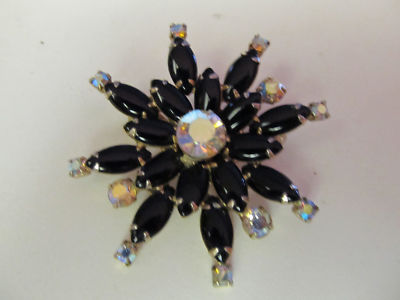 Vintage AB Rhinestone & Milk Glass Juliana Brooch
