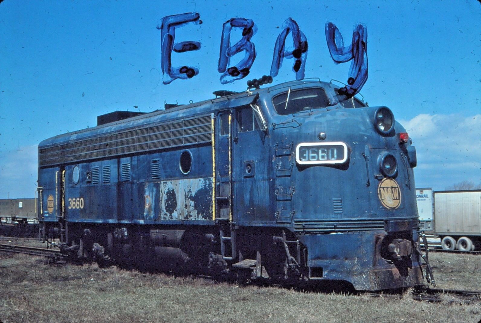 Title (ebay affiliate link): N&W 3660 F7A ONT 1978 Norfolk & Western Railroad duplicate 35MM Train Slide