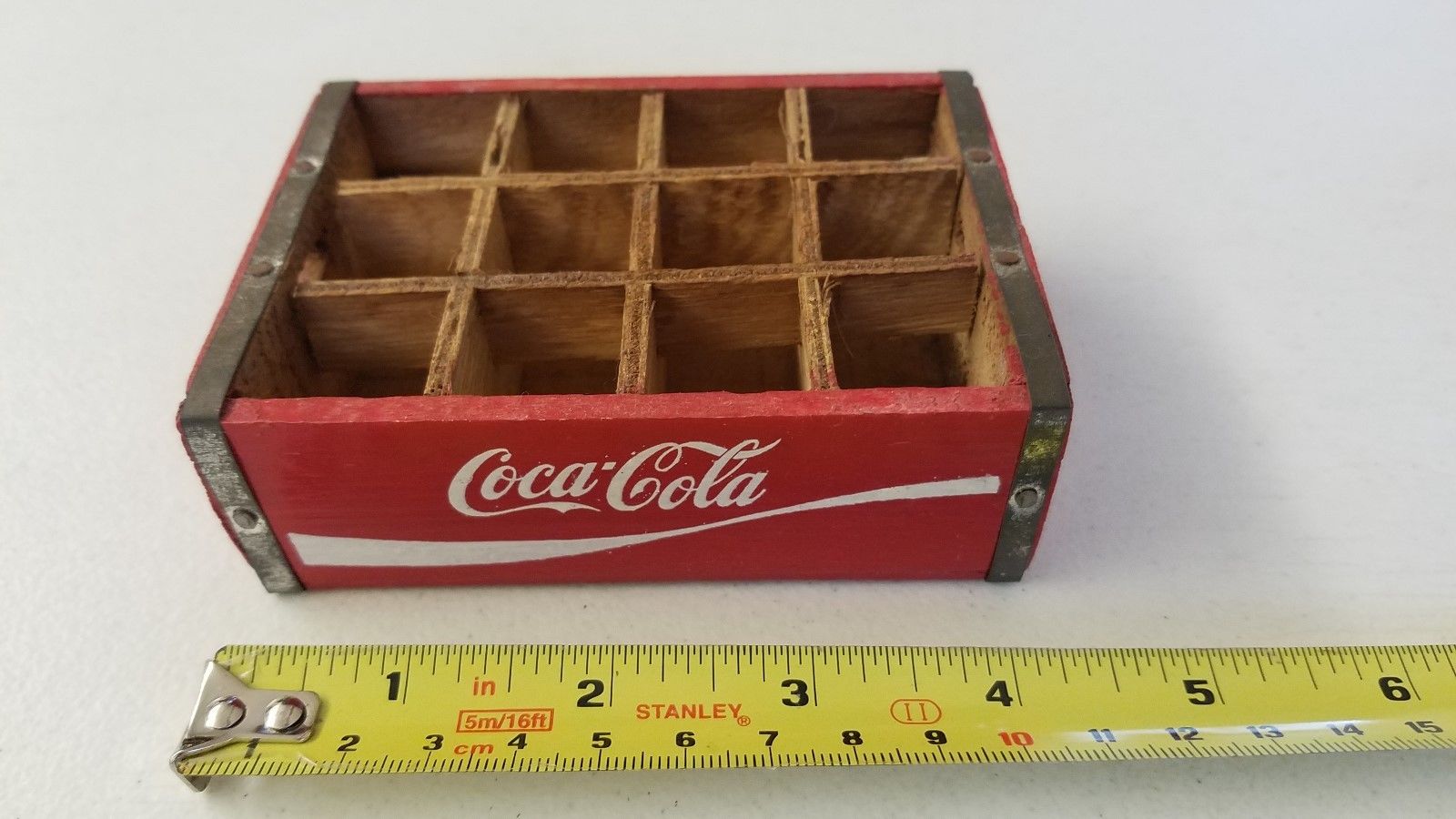 Title (ebay affiliate link): Miniature Coca Cola Wooden Crate, 12-Pack, 4-1/4"