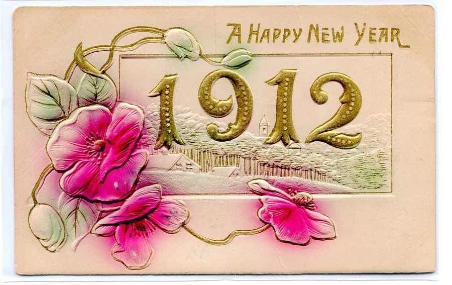 Title (ebay affiliate link): 1912 A Happy New Year Embossed Air-Sprayed Poppies Cabin Gold Antique Postcard