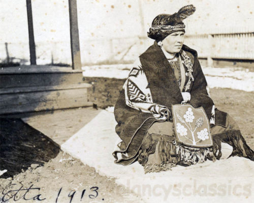 Title (ebay affiliate link): 1913 Prineville Etta Woman American Indian Maiden Beaded Plant Fringe Bag
