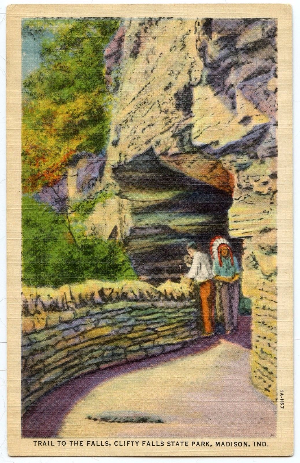 Title (ebay affiliate link): B7358 Clifty Falls State Park Trail to Falls Madison IN ''31 Linen Postcard Teich