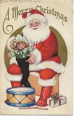 Vintage Christmas Postcard Santa Putting a Doll in a Sock 1907-1915