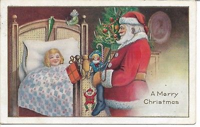 Title (ebay affiliate link): Vintage Christmas Postcard Santa Watching Child in Bed 1916