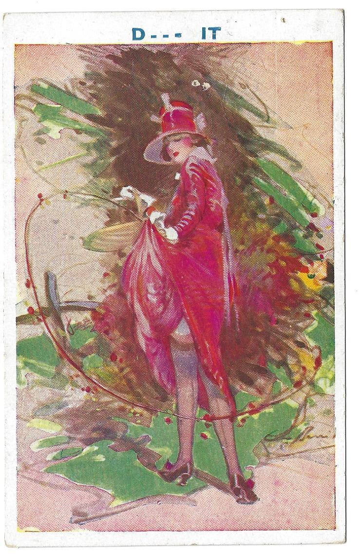 Barribal D- - - It Art Deco Woman Dress gets blown in Wind Postcard AS