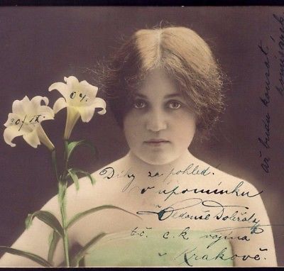 Title (ebay affiliate link): Edwardian woman w/Cleo de Merode style hair. Old Real Photo postcard TRAUT 1900s